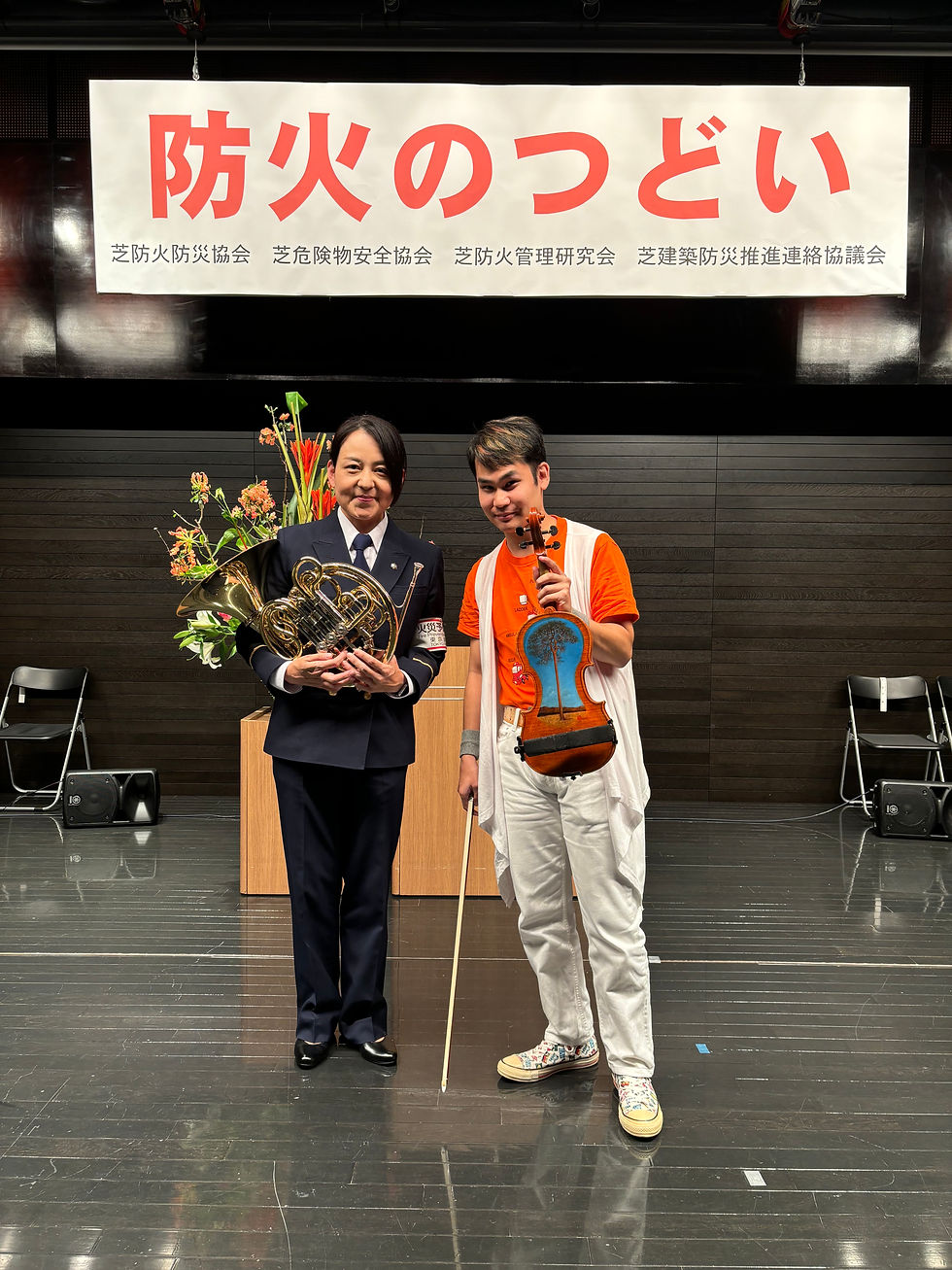 【イベント活動報告】11月8日 東京消防庁 芝消防署『防火のつどい』第二部『防火防災演奏会』mizuki shikimachi2024年11月9日読了時間: 1分芝消防署の島津真紀子さん(ホルン)とコラボさせて頂きました。とても素敵な音色でした。